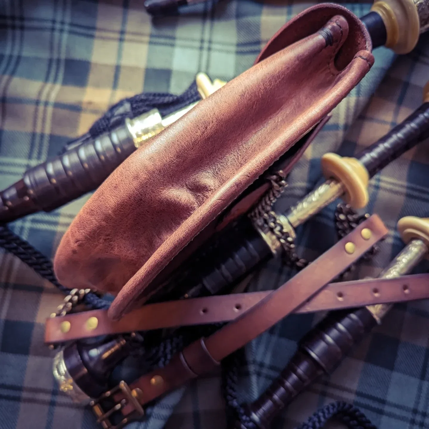 My sporrans, like all my leather goods, are all hand cut, embellished and stitched by hand. I use only high-quality, full-grain leather, dyes and braided, waxed Ritza Tiger thread. I use higher-quality hardware than most other sporran makers; heavier chain, brass roller buckles, two belt stays and thicker leather belt straps.