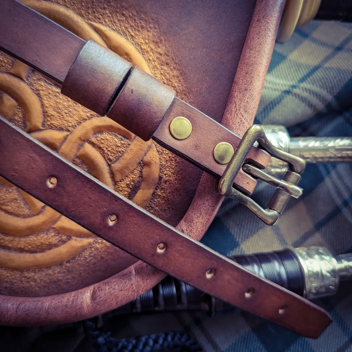 This is a custom piece and can be made with a wide variety of leather colours, Celtic knotwork and hardware finish.